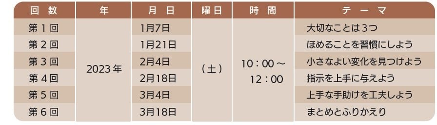 - 両親での参加を希望される場合、主たる参加者は全6回を通し申込者おひとりに限定されますが、共にZoomに入り視聴する形でしたらご参加いただけます。希望される場合は、事前に相談ください。