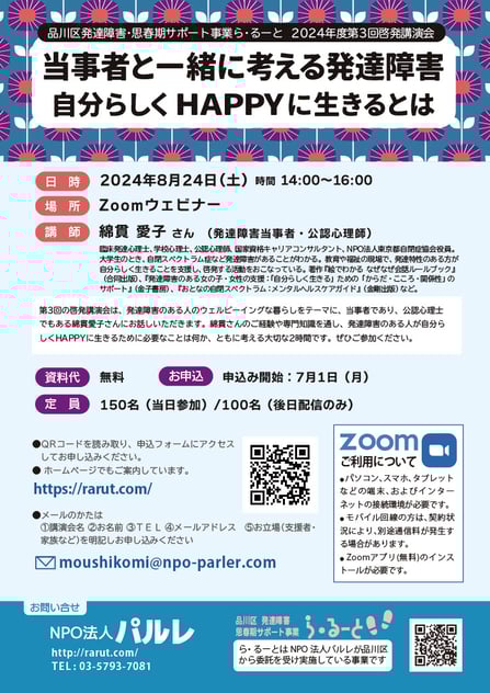 品川区発達障害・思春期サポート事業ら・るーと 2024年度第2回啓発講演会